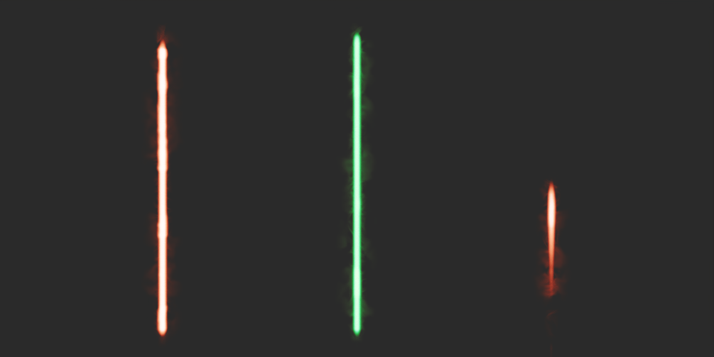 This model was designed in Cycles and never tested in Eevee. It might get a bit of adjusting to get it to look as great in your scenes as it does in mine, but with the well-documented node structure, it should be easy to edit it on the fly. The file includes a regular lightsaber, one that matches Kylo Ren's lightsaber, and a blaster bolt. It even has a useful "contact point" tool, for showing those bright flashes that lightsabers emit whenever they hit another lightsaber.